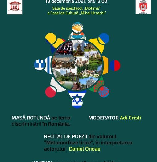Evenimentul va avea loc sâmbătă, 18 decembrie, de la ora 13.00, în Sala „Diotima” a Casei de Cultură „Mihai Ursachi” a Municipiului Iași, unde publicul va putea urmări o dezbatere la care vor participa reprezentanții comunităților evreiești – Albert Lozneanu, secretar general al comunității și Idles Benjamin, președinte al Comunității Evreilor din Iași, armenești – Avetis Stepaniant, președinte al organizației de tineret, specializat în istoria armenilor, poloneze – Fryderyk Kluska, președinte al Comunității Poloneze din Iași, rrome – Doru Vasiliu, consilier școlar, grecești – Marta Alexandrescu, președinte al Comunității Elene din Iași, ucrainene – Victor Hrihorciuc, președinte al Uniunii Ucrainenilor din România – Filiala Iași, precum și rușilor-lipoveni – Valeriu Ivanov, președinte al Comunității Rușilor-Lipoveni din Iași.